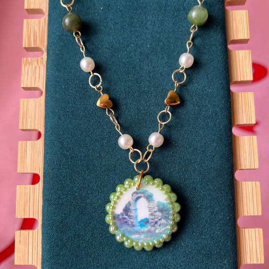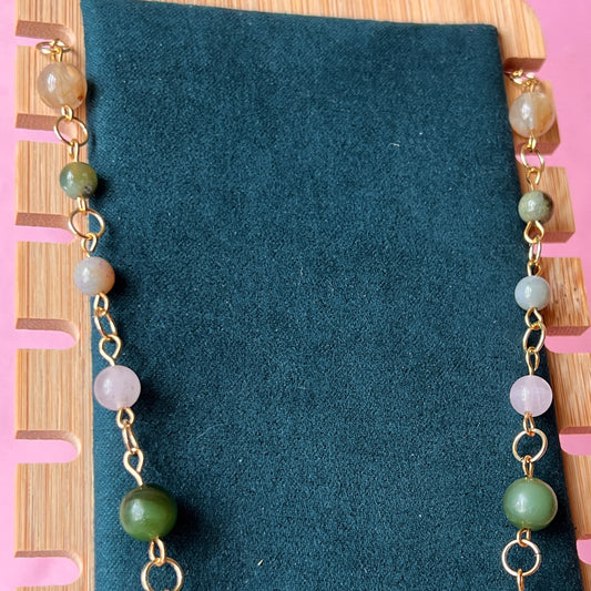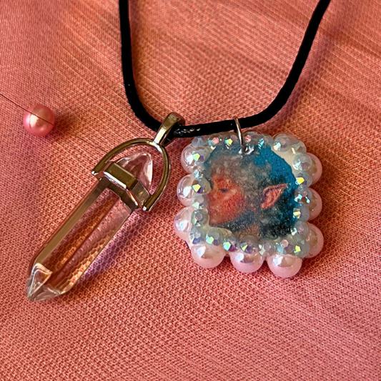 Fairycore Crystal Portrait Necklace | Rose Quartz + Agate | Coquette Fairycore Necklace