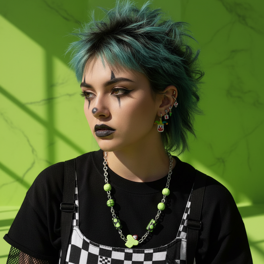 Punk Girl Grunge Beaded Chain Necklace â Olive Made