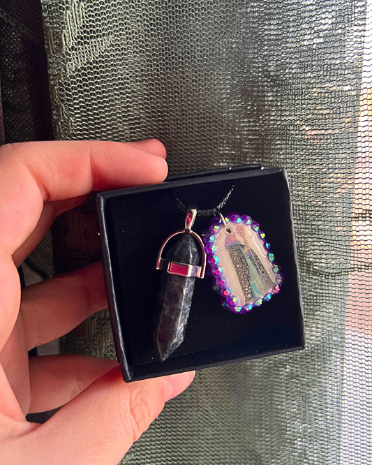Medieval Sorceress Polymer Charm Necklace | Black Marbled Stone Pendant