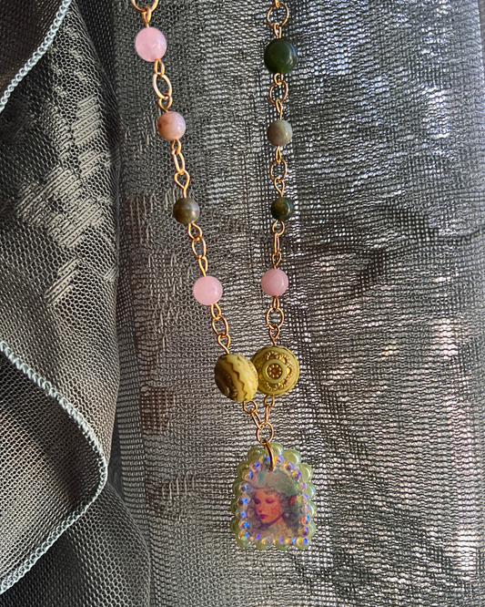 Fairycore Crystal Portrait Necklace | Rose Quartz + Agate | Coquette Fairycore Necklace