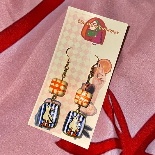 Hand Painted Goose Earrings — Clay Bird Charms, 24k Gold Plated Hardware | Olive Made