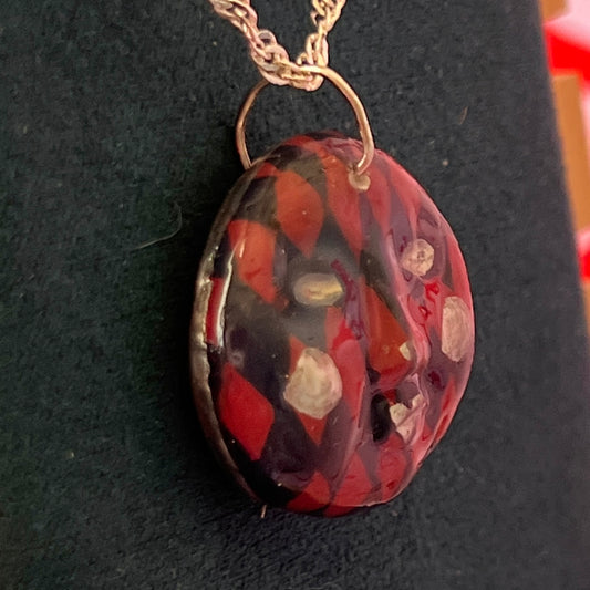 Burgundy Harlequin Mask Necklace | Hand Painted Clay Charm | 925 Sterling Silver Chain | Theater Inspired Jewelry