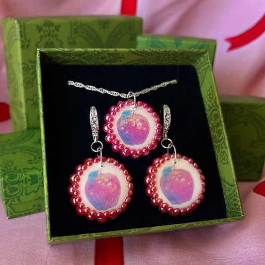 Apple Of My Eye Charm Earrings & Necklace Set | Polymer Clay Fruit Jewelry | Olive Made