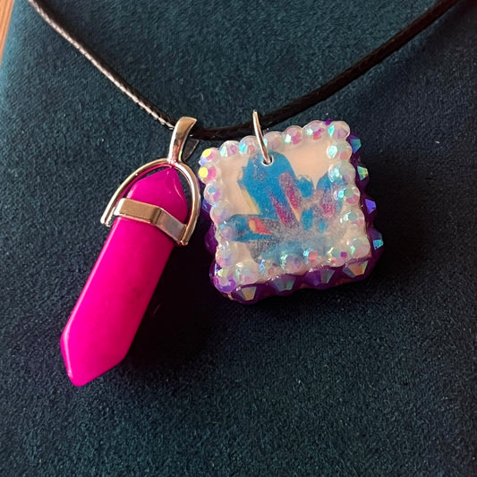 Pink & Blue Crystal Cluster Necklace | Bedazzled Gem Charm Pendant | Fairycore Whimsigoth Y2K Necklace | Olive Made