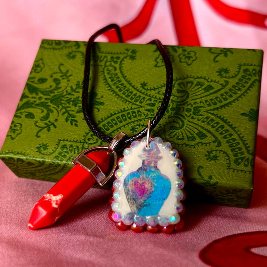 Red Crystal Blue Potion Necklace | Bedazzled Potion Bottle Pendant | Fairycore Y2K Charm Necklace | Olive Made