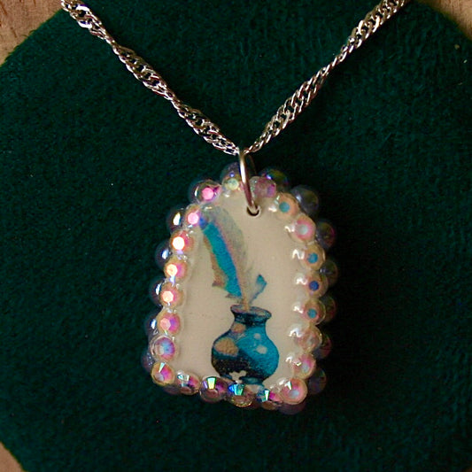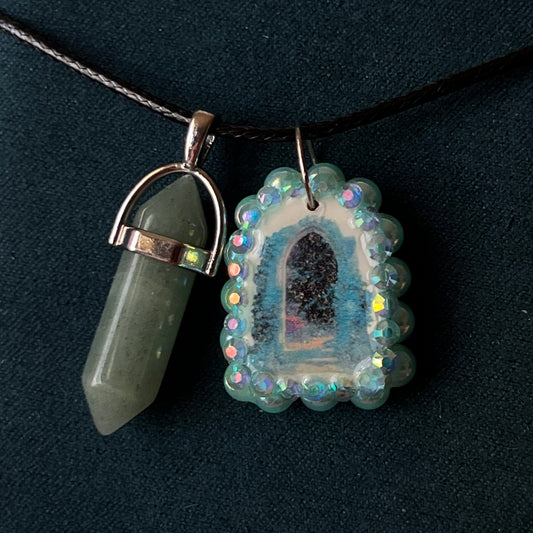 Magical Archway Charm Necklace | Polymer Clay | Iridescent Pearl Portal Pendant + Blue Gem Charm