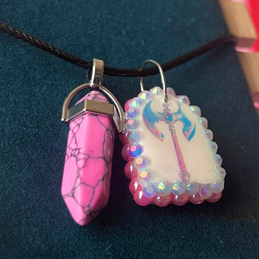 Battle Axe Charm Necklace | Polymer Clay Pendant + Pink Marbled Gem