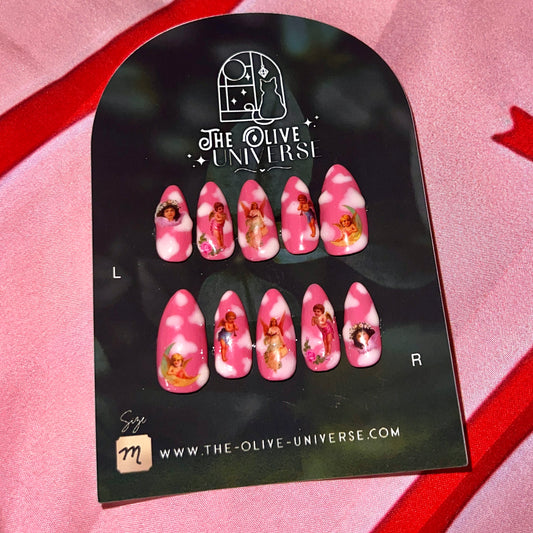 Masc Fit | Green & Golden Angel Nails | Short Square Set