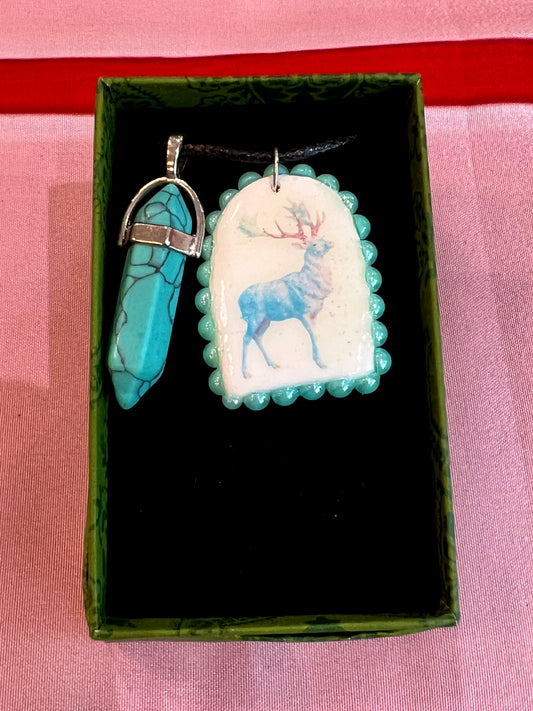 Blue Magic Charm Necklace | Blue Stag Arch Pendant or Iridescent Jackalope | 22” Adjustable Faux Leather Chain