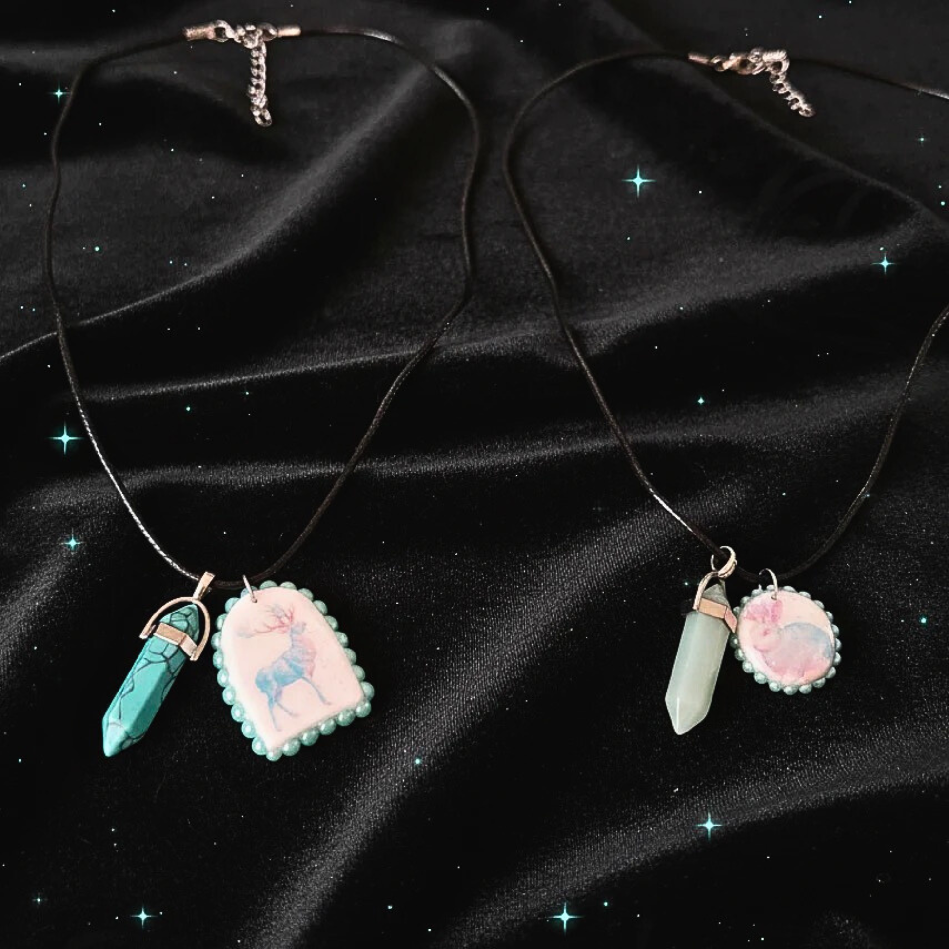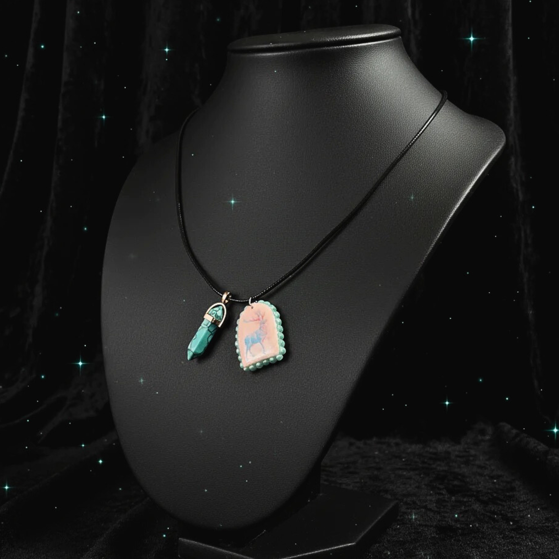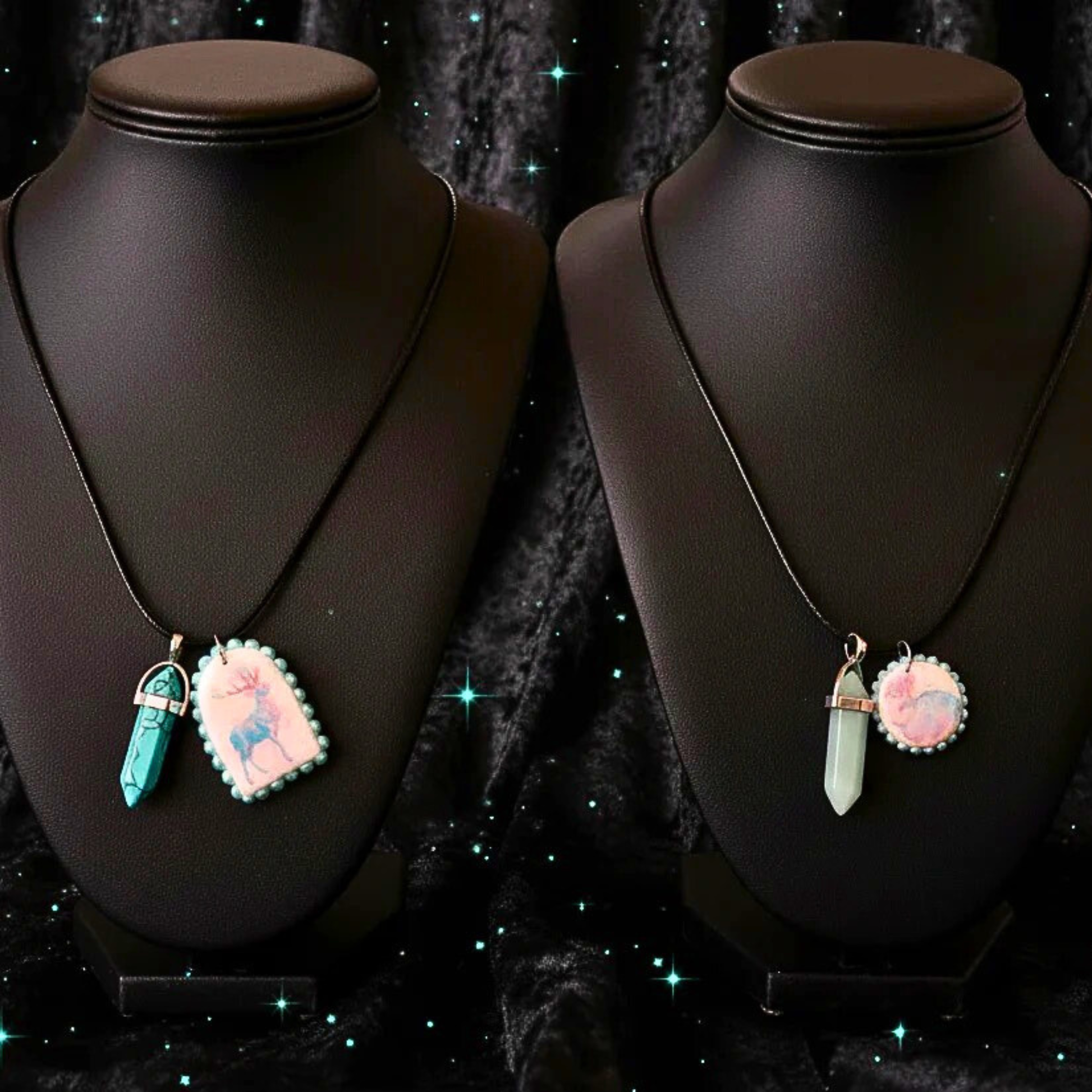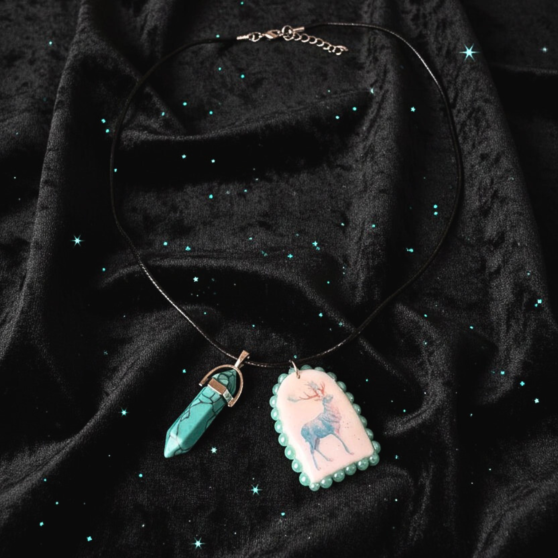 Blue Magic Charm Necklace | Blue Stag Arch Pendant or Iridescent Jackalope | 22” Adjustable Faux Leather Chain