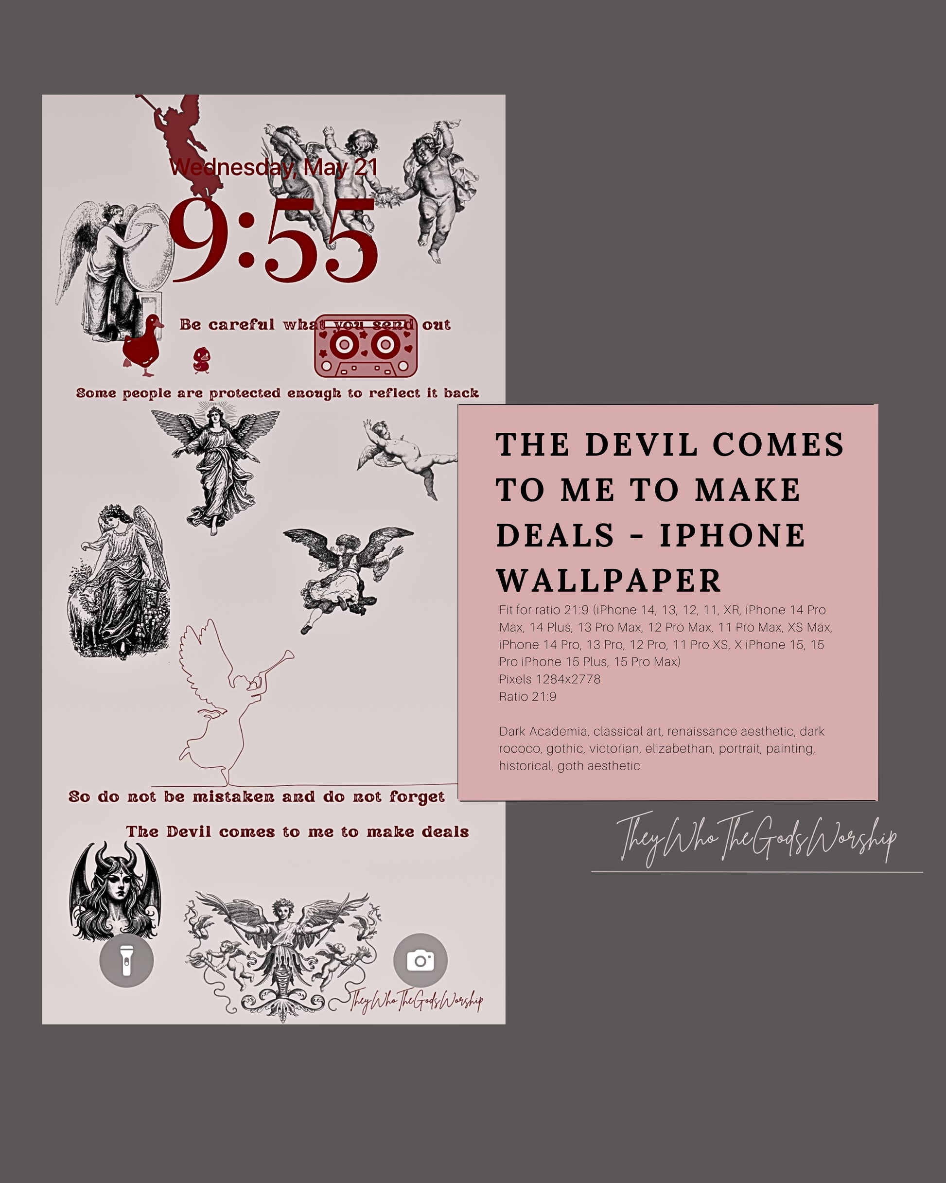 - The Devil Comes To Me To Make Deals ā dark academia intensity, mythic temptation, and gothic elegance.