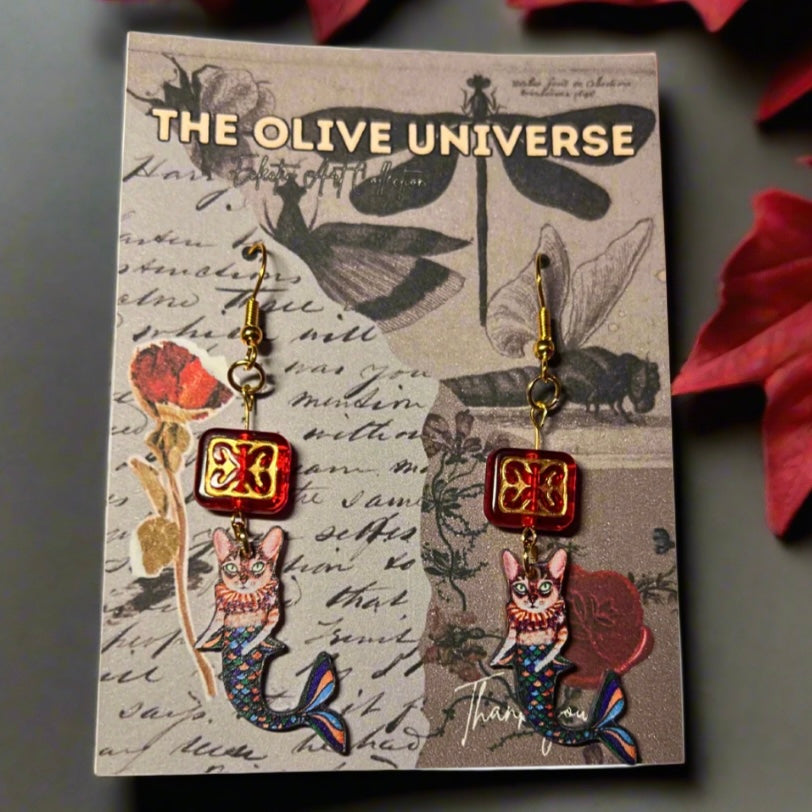 The Baroque Mermaid Cat Earrings – Limited Edition Artisan Charm Earrings