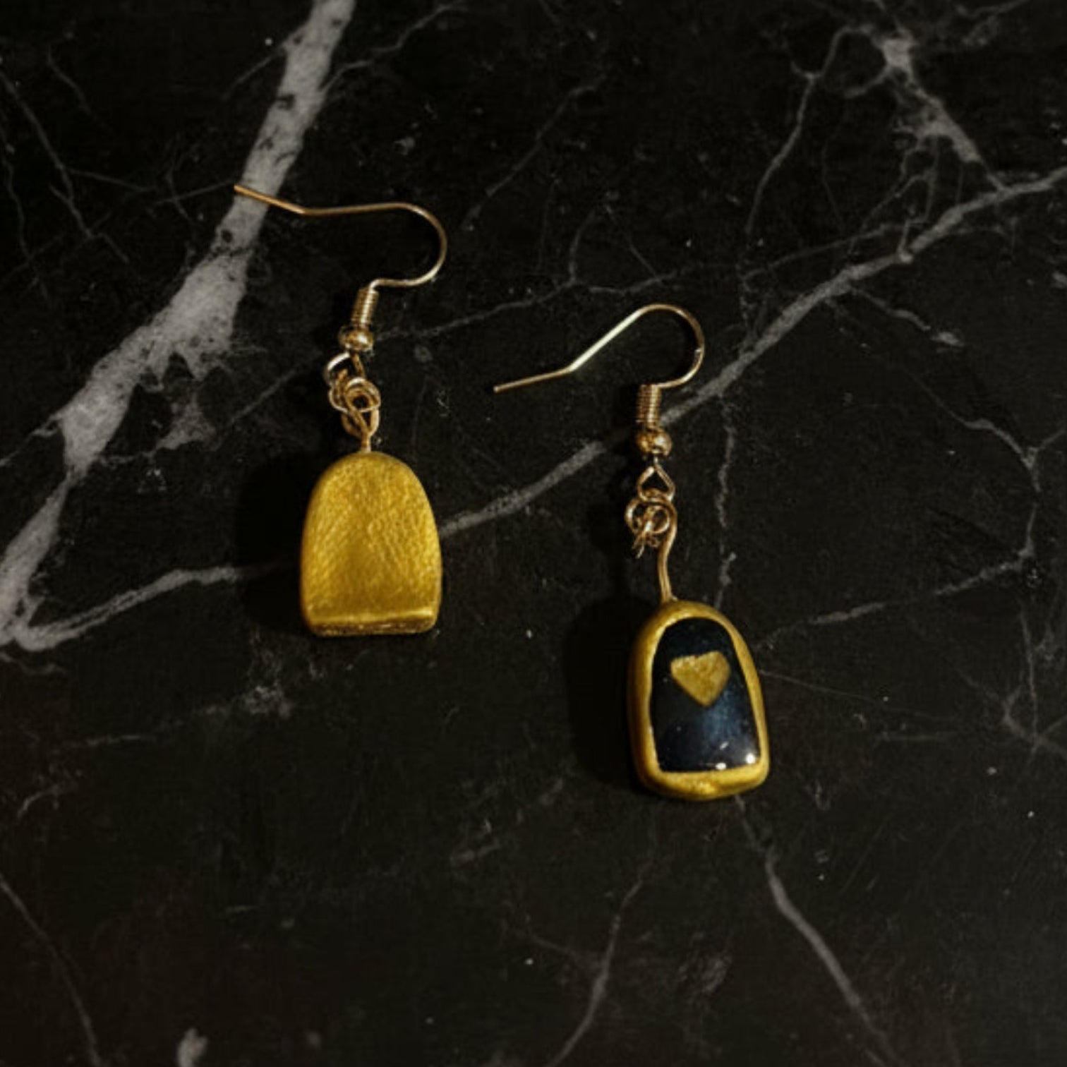 Mini Heart Arch Earrings | Black Clay Hearts | 18k Gold Plated | Business Goth Jewelry | Handmade Statement Earrings | Artisan Sculptural Earrings