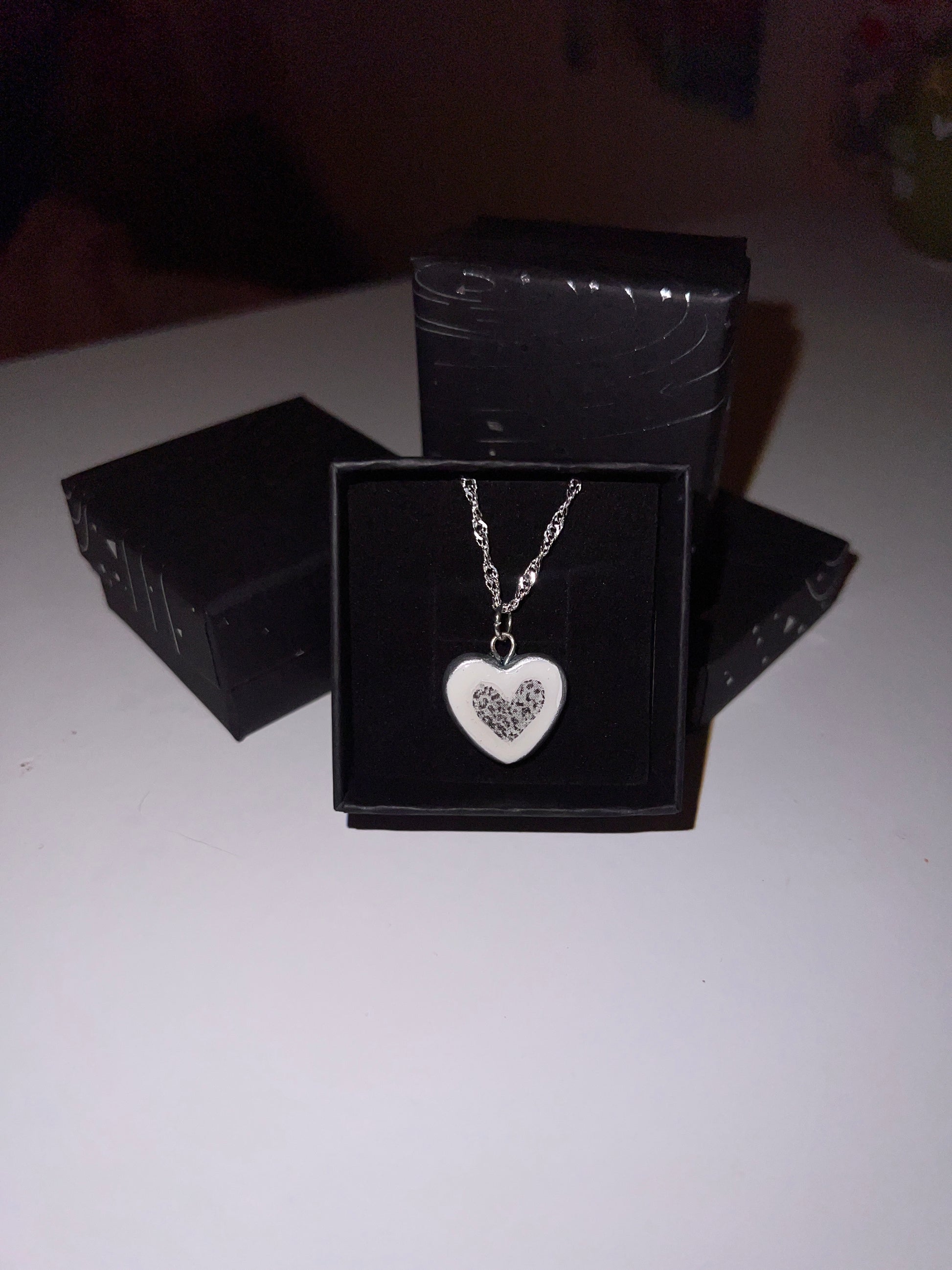 Y2k Nostalgia Necklace | 925 Silver Chain Monochrome Clay Charm Necklace | Minimalist Cheetah Heart & Balloon Dog Design